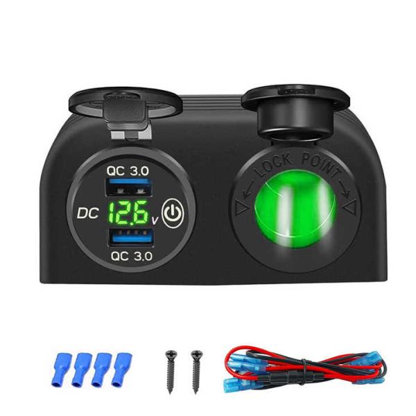 QC3.0 Double USB Car Charger Waterproof Switch Voltage 12-24V Images |